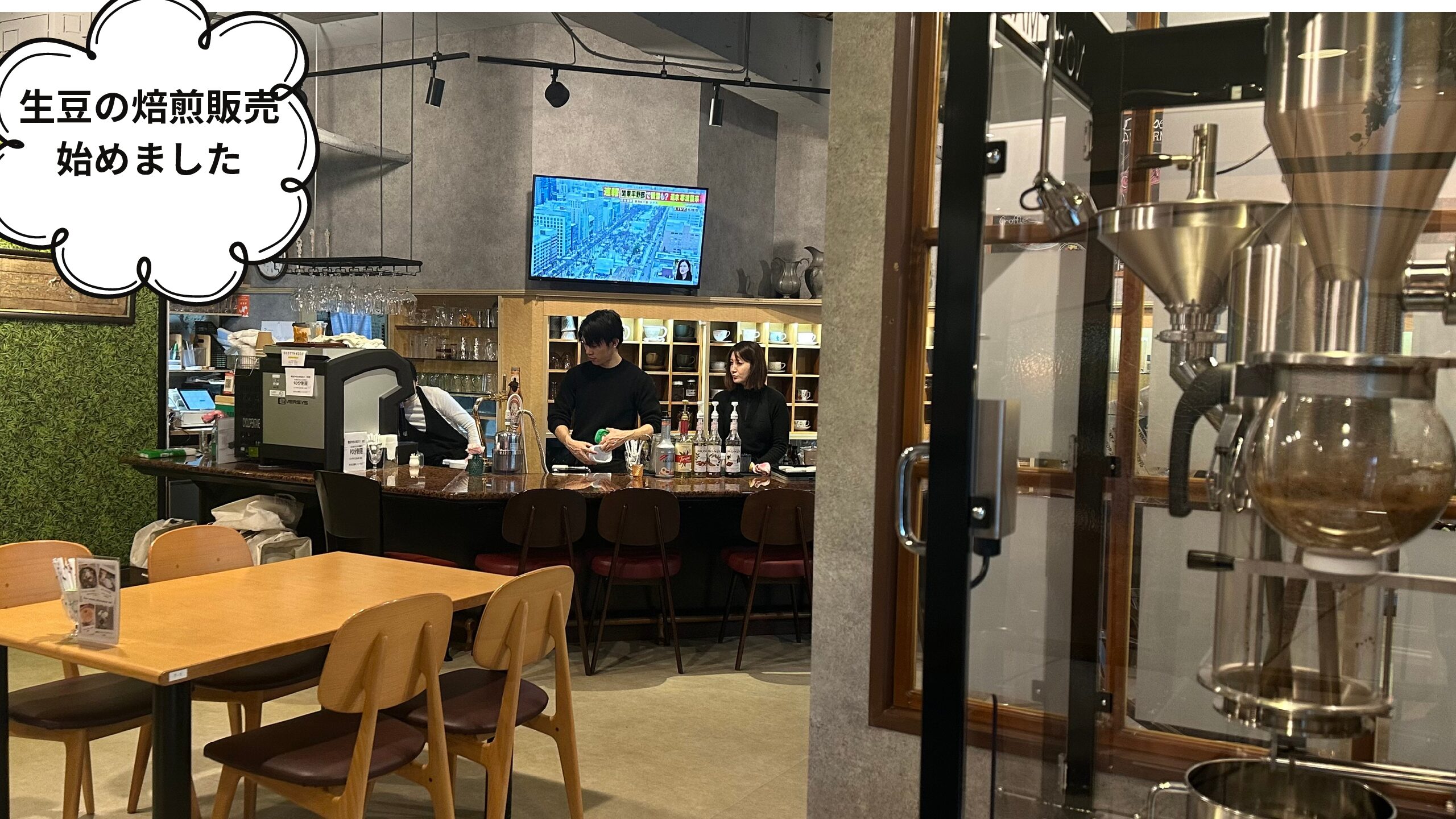 フロアースタッフ2人、厨房3人で運営しています。忙しい中でも どのスタッフが担当してもバリスタが提供するようなデロンギ・エバシスを購入、豆は鮮度のいいもの ここでしか味わえないドリンクです。今までコーヒーが苦手だった方でもスチィームドミルクのカフェラテはいかがでしょう〜。感激することまちがいなしです。